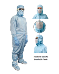 Garment is designed and manufactured from two layer spunbond combined with three layer meltblown nonwovens inside (SMMMS) suitable for use in either a sterile or non-sterile cleanroom environment, providing a full head-to toe coverage solution in a variety of combinations, the range includes coverall, hoods, overboots.